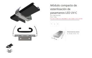 También tenemos en SERVICEnter, desde el lunes 18 de mayo, a disposición de todos nuestros clientes un módulo esterilizador con luz UV-C para pasamanos de escaleras y pasillos móviles que asegura la desinfección mediante esta técnica de cualquier virus con corona.